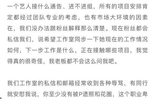最近网上可是炸开了锅,一个前女团经纪人的爆料视频成了大家茶余饭后的热门话题。这视频里,她可是揭露了不少娱乐圈的“秘密”,让人听得是心惊肉跳。今天,就让我带你一探究竟,看看这个视频里都说了些什么吧!